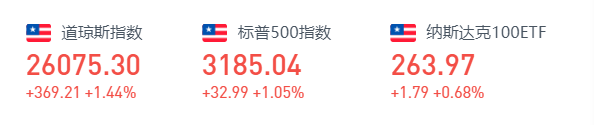 上周五,美股走势维持强劲,截至收盘,标普500指数涨33.00点涨幅1.05%,报3185.04点;纳指涨69.70点涨幅0.66%,报10617.44点;道指涨369.20点涨幅1.44%,报26075.30点。