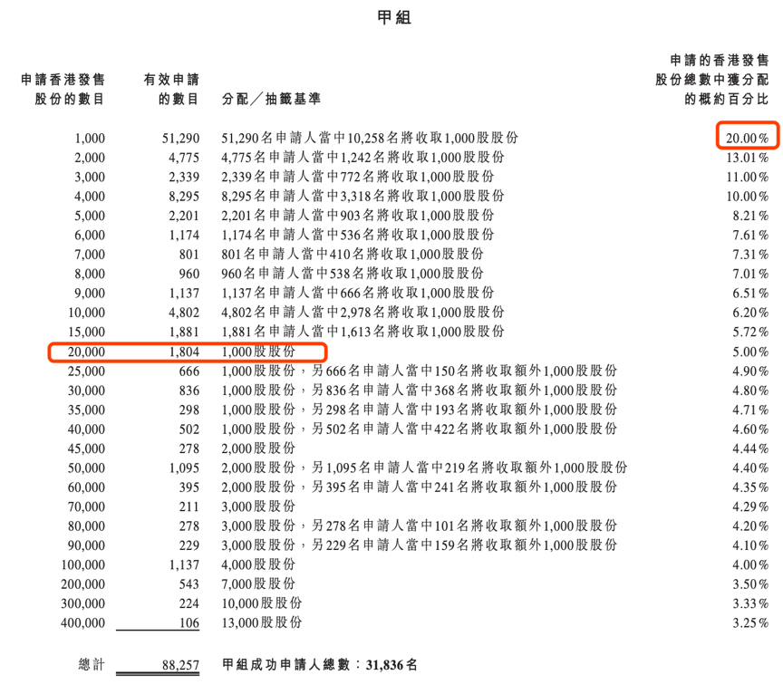 合共接获89375份有效申请,一手中签率20%,认购20手稳中一手。