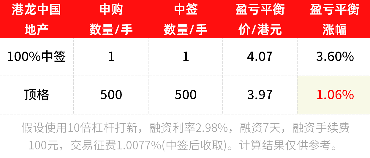 甲乙组盈亏平衡点趋同,乙头申购500手中签17手,涨幅高于2.59%即可获利。
