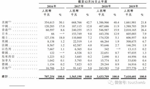 思摩尔2019年来自美国的收入为16.62亿,占比21.8%;来自中国大陆收入为15.88亿,占比20.9%;来自香港比例为20.1亿元,占比为26.4%。