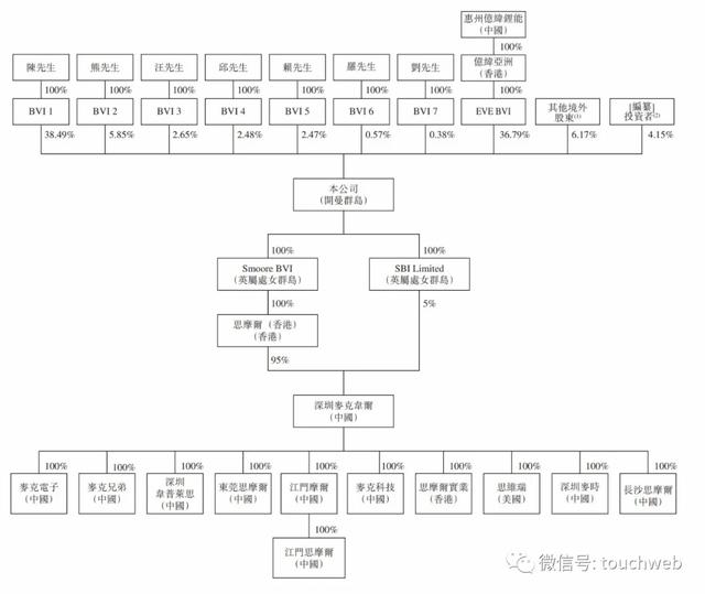 IPO前,陈志平持有38.49%股权,为最大股东;熊少明持股为5.85%,为第二大股东;亿纬锂能SmooreInternationalHoldingsLimited(“SIHL”)通过间接持有36.79%股权,为第二大股东。