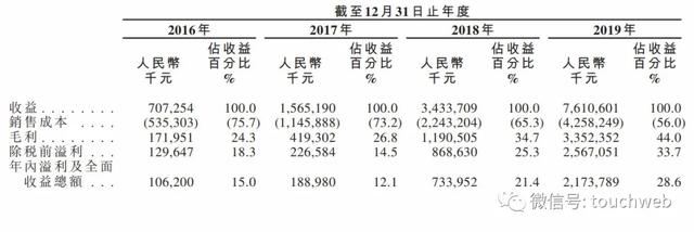 招股书显示,思摩尔在2016年、2017年、2018年、2019年营收分别为7.07亿、15.65亿、34.34亿、76.1亿。