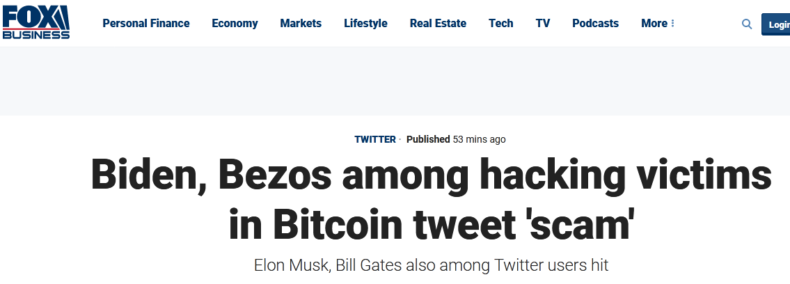 福克斯新闻网报道称,当地时间15日,从前总统拜登到现任大公司负责人,在推特上人气颇高的多个著名账号均遭到黑客攻击,发布了募集比特币捐款的推文。福克斯新闻网报道称,15日有人在推特上发布推文称,“我在回馈社区。所有寄往以下地址的比特币将加倍退回!如果你寄1000美元,我就回寄2000美元。只做30分钟。随后,这些推文附上比特币钱包的相关代码。”