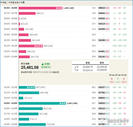 街货分布方面,截至周三,恒指牛证街货主要在收回价24800点至25300点之间,累计相当约2975张期指合约;恒指熊证街货在收回价25900点至26900点区间,相当约6392张期指合约。