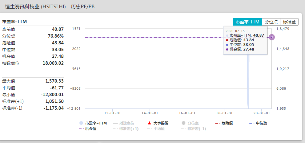 同样在许多投资者喜爱布局的科技行业中,恒生资讯科技业当下的动态市盈率为40.87,也接近10年以来危险值43.84,超出历史中位数33.05不少。对于投资者而言关注手中个股的估值水平是一个对未来投资决策的好参考。
