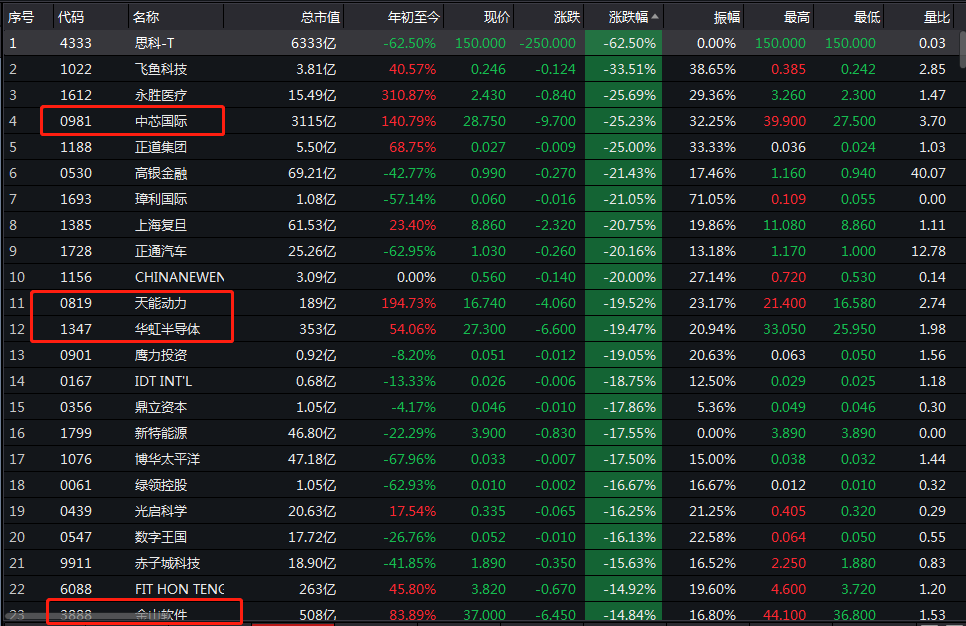 而打开港股主板行情,2155只股票中超过1300只在7月16日收跌,占比总数超过60%。在领跌的股票中,不乏今年以来的涨幅可观的牛股。