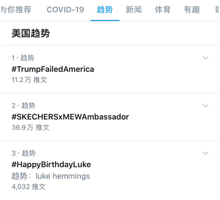 16日,“特朗普让美国失败”话题登上了美国区推特热搜榜第一。