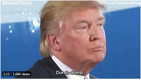这段视频引用3位前特朗普政府高官对他的批评:前国防部长吉姆·马蒂斯称他的理解能力只相当于五、六年级的学生,白宫前幕僚长约翰·凯利说特朗普是个白痴,前国务卿雷克斯·蒂勒森称呼特朗普是个傻瓜。视频批评说,作为一位总统,特朗普在各个方面都是失败的,“特朗普很蠢。”