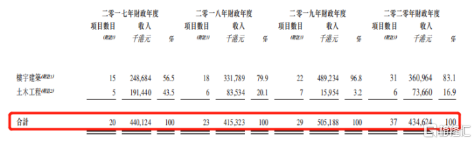 报告期内,天任集团的业绩保持了平稳中带增,并在2020年出现向下趋势。招股书显示,于2017—2020年财政年度,公司项目数量分别为20、23、29及37个,产生收入分别为4.4亿港元、4.15亿港元、5.05亿港元及4.34亿港元,年内溢利分别约为3.9千万港元、4.2千万港元、6.5千万港元及3.8千万港元。。其中2020年虽然项目数量有所增加,但业绩却出现下滑。