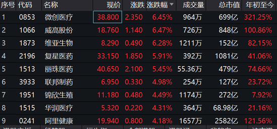 医药股强势反弹,微创医疗、威高股份、维亚生物涨超6%,复星医药、丽珠医药涨超5%。