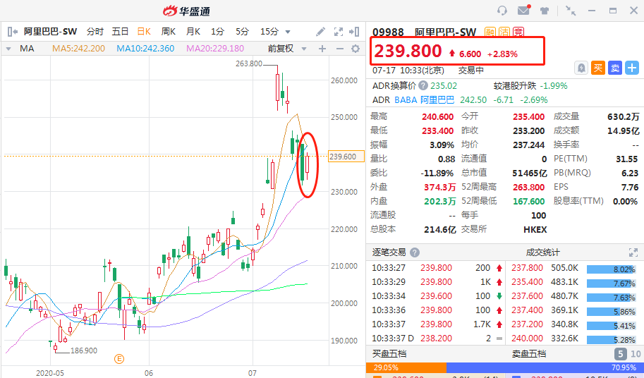 此外,截至北京时间10:33,阿里巴巴港股涨2.83%,昨日曾下跌4.19%。