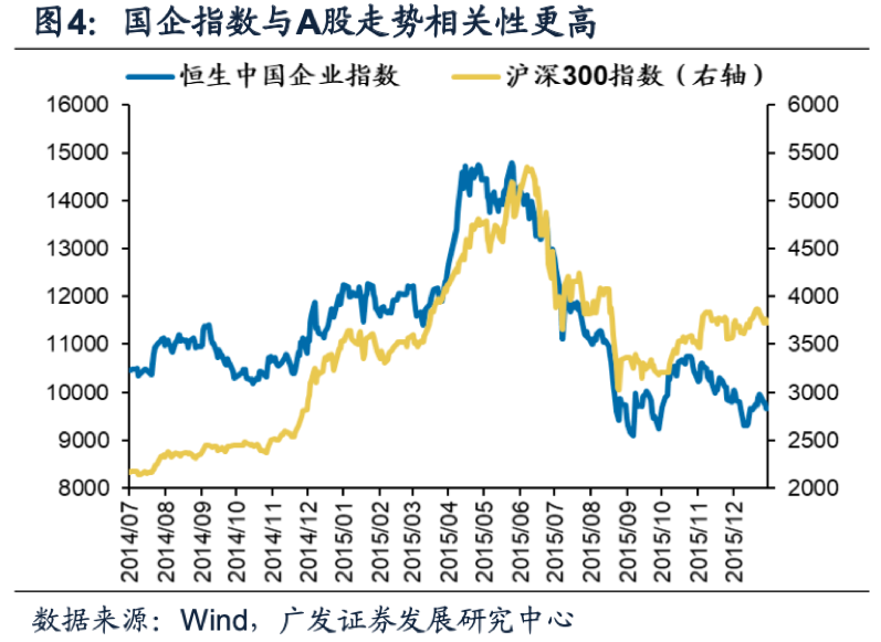 3.与恒指相比,国企指数走势与A股重合度更高;