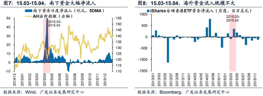 15年3月初港股回调后,恒指估值一度接近历史均值-1标准差低位。在同期A股已明显上涨的背景下,无论从港股绝对估值,还是AH相对估值看,港股低估值特征均得到凸;叠加15年3月证监会批准公募基金通过沪港通投资港股,南下资金做多热情被点燃,开始大幅 净流入港股,带动估值快速修复。