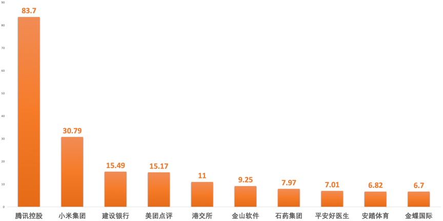 个股净流入方面,本周南下资金净买入腾讯控股83.7亿港元,净买入额排名第一。此外,南下资金还大幅加仓了小米集团、建设银行、美团点评以及香港交易所,其中净买入小米集团超30亿港元。
