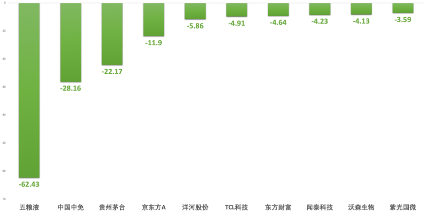净卖出个股方面,本周北上资金净卖出五粮液62.43亿元,净卖出额排名第一,该股于近期经历一波强势上涨后开始回落。此外,北上资金还卖出中国中免、贵州茅台等短期涨幅较大的个股。