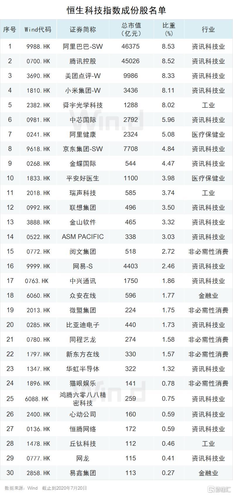 “港版纳指”出炉,阿里、腾讯、美团、小米领跑