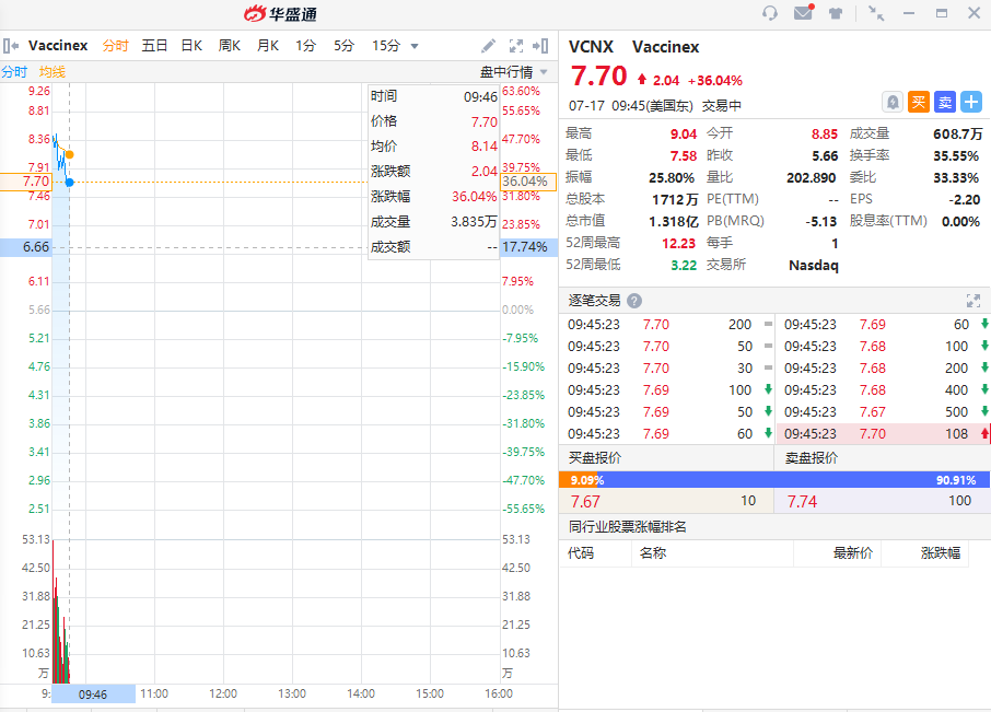 Vaccinex一度涨超50%,诺瓦瓦克斯医药涨超10%,Moderna涨超2%。