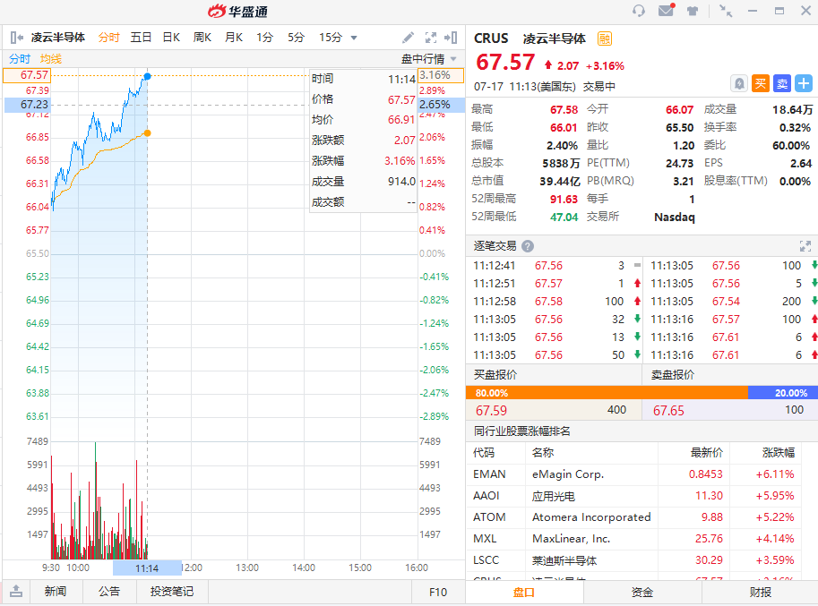 华盛资讯7月17日消息,美股三大指数短线上涨,纳指转涨,道指跌幅收窄至不足10点。思科涨超2%,Snap涨超1%,特斯拉涨0.5%。芯片股多数上涨,凌云半导体涨超3%,英特尔、德州仪器、恩智浦、意法半导体涨超1%,台积电涨0.8%。中概股中,网易有道涨近4%,虎牙、斗鱼、阿里巴巴涨超1%。