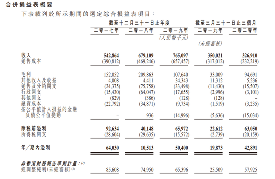 根据招股书,公司2017-2019年收入分别为5.4亿、6.8亿、7.7亿元,2020年第一季度从去年的3.5亿下滑至3.3亿元。不过,盈利却从去年一季度的1987万元增加至今年一季度的4289万元。