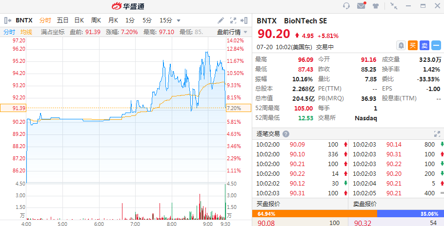 与此同时,辉瑞微涨约1%,BioNTech涨近6%。