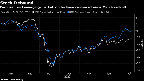这些策略师写道,欧洲的货币和财政政策比新兴市场更具支持性,新兴市场的政策空间有限,并且“为因应更多的财政或货币刺激,而可能提升利率并使货币贬值”。