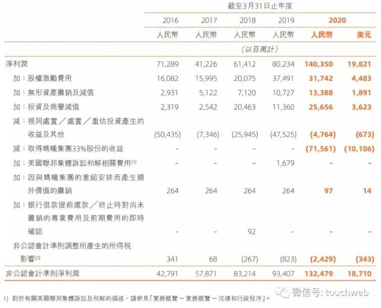 对于2019年9月取得蚂蚁集团33%股份后的一次性收益,阿里巴巴在四季度确认该收益上调人民币23亿元。