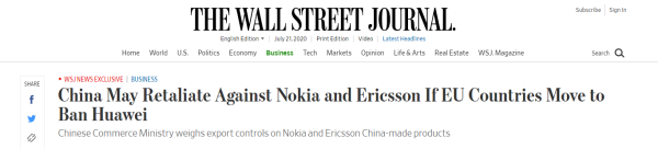 汪文斌指出,欧洲一些媒体的相关报道,都是援引《华尔街日报》所谓知情人士的消息,编造类似的假新闻,无非是为了挑拨中欧之间的良好合作关系。“我愿在此重申,中方在5G问题上的立场是一贯的、明确的。中国对包括诺基亚、爱立信等欧洲企业在内的各国电信企业参与中国5G市场合作保持开放。”