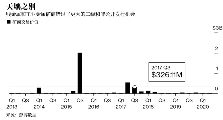 然而,让金矿商受益的好消息,却是其他金属矿商的坏消息。比起黄金,铜和锂等金属对经济增长的依赖程度更高。经济的萎缩,使得这类金属对投资者的吸引力下降。彭博汇编数据显示,贱金属和工业金属公司第二季度仅筹得3400万美元,比去年同期减少了40%。