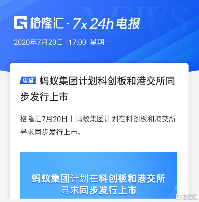 但值得注意的是,蚂蚁集团这次是计划在科创板和港交所同步上市,这可能会令蚂蚁最后上市的估值高于2000亿美元。