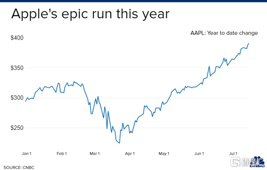 自3月份市场触底以来,伯克希尔持有的苹果股份(占其投资组合的40%)价值已大增400亿美元。