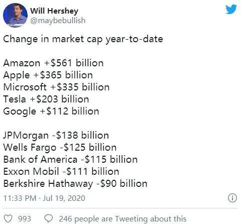 很明显,今年押注于科技股的投资者都得到了很好的回报,而对于银行股的投资者来说,情况就不怎么好了。