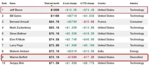 可见,美国科技股暴涨已经令全球富豪榜的名次悄悄发生了变化,尽管巴菲特将近一半管理资产投给了苹果,但其财富名次依然被其他科技大佬给超越了。
