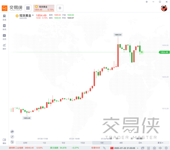 周三,黄金再次上演疯狂行情。亚盘时段现货黄金持续拉涨,一度短线暴拉23美元,怒破1860关口;但欧盘时段黄金回吐部分涨幅,一度较日高回落15美元跌至1850下方。