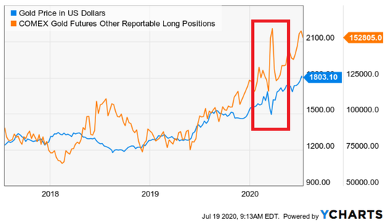 要回答这个问题,最重要的是看看COMEX未平仓黄金期货头寸规模。