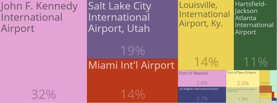 根据相关流程,从伦敦运往COMEX的黄金都需要通过肯尼国际迪机场(John F·Kennedy International Airport,以下简称JFK机场)转运。自今年1月份以来,通过该机场入境美国的黄金总共为334吨,占美国进口总量的77%。除了英国之外,这些黄金主要来自澳大利亚、瑞士等国。