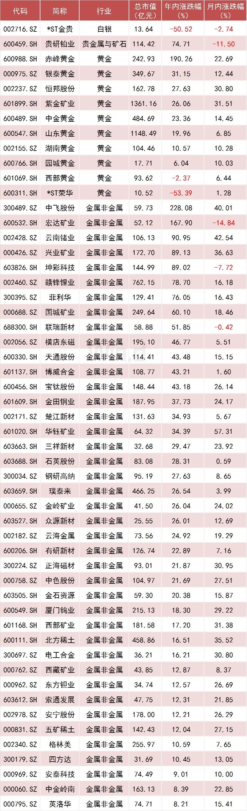 涨势已是过去,未来才是关键。Wind梳理显示,A股金属板块中,有多只个股涉及贵金属业务,今年以来多数上涨。
