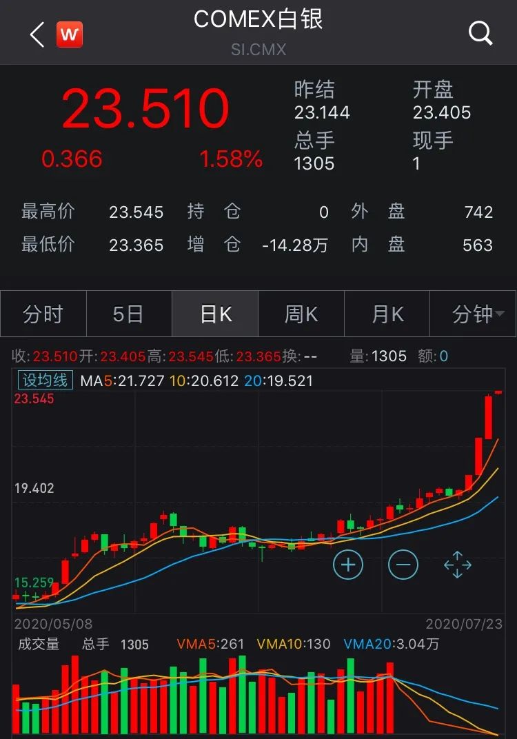 2、白银价单日飙涨超8%,创近7年新高,自3月低点已翻倍;