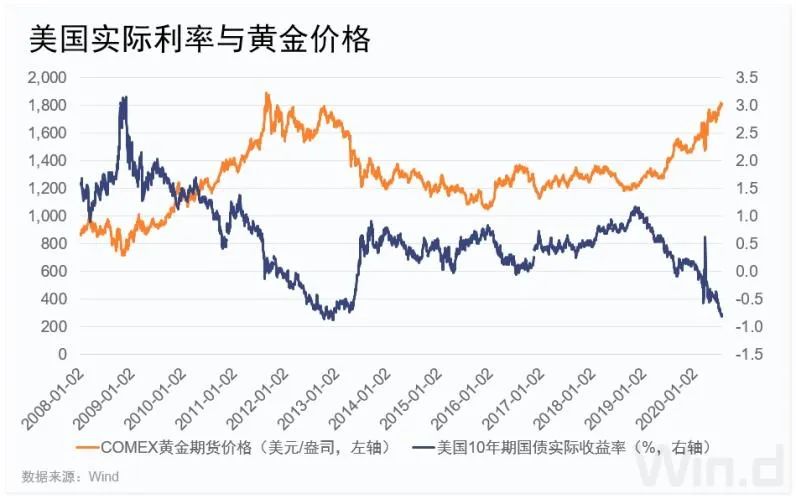 中泰证券最近发布研报表示,经济复工复产推进,叠加财政政策的发力,通胀预期的修复亦是必然,实际收益率不断下滑,支撑黄金价格趋势上行。在复苏初期,随着企业复工复产的推进,主要大宗商品价格企稳回升,由于名义利率仍持续维持低位,对应实际利率水平进一步下行,在货币政策转向前黄金上升动力依旧不改,复苏的初期并不影响本轮黄金白银的上升态势。