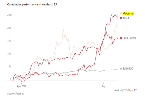 美股疫苗企业今年的上涨加剧了泡沫风险。尽管疫苗的新进展令投资者欢欣鼓舞,但相关公司的估值扩张已充分消化了这些结果。具体来看,Moderna的股价今年以来涨幅已达到325.5%,在过去一个月里上涨了近30%,而大型制药公司辉瑞和阿斯利康 (AstraZeneca) 的股价7月以来涨幅分别达到17.5%和7.73%。