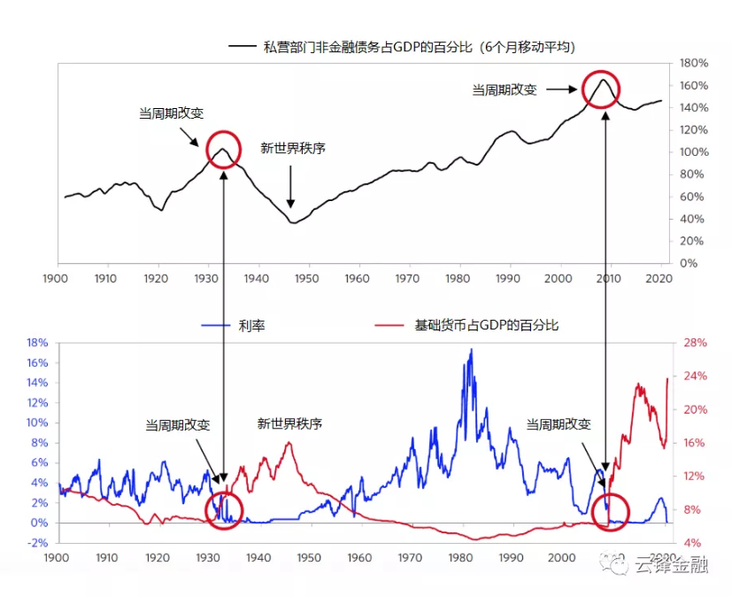 在此期间,美国的债务和非债务性负债如养老和医疗支出在持续增长,而这大多用于金融投机,催生了2000年的网络泡沫和之后的次贷危机。这些债务周期虽非人们所愿但也可以理解,因为人们尤其是政治家倾向于眼前的满足,而不是长期的金融安全。 Dalio指出,很多政治家更关注他们得到什么,而不关注钱从哪里来或要怎么偿还。所以他们有很强的意愿去借钱然后给选民承诺。但这会导致债务的增加并埋下很多隐患。在1990年至2008年期间,发生的情况印证了这一结论。 从1945年到2008年的整个长期债务周期中,每当美联储希望经济复苏时就会降低利率、扩张货币供给、增加信贷规模,从而提高了股票和债券价格。这就是美联储在本世纪初到2008年的做法,即下调利率导致债务增长速度快于收入增长,造成了不可持续的经济泡沫,这一泡沫在2007年达到顶峰。2008年泡沫破裂,利率自大萧条以来首次跌至0%,这一情况发生了变化。