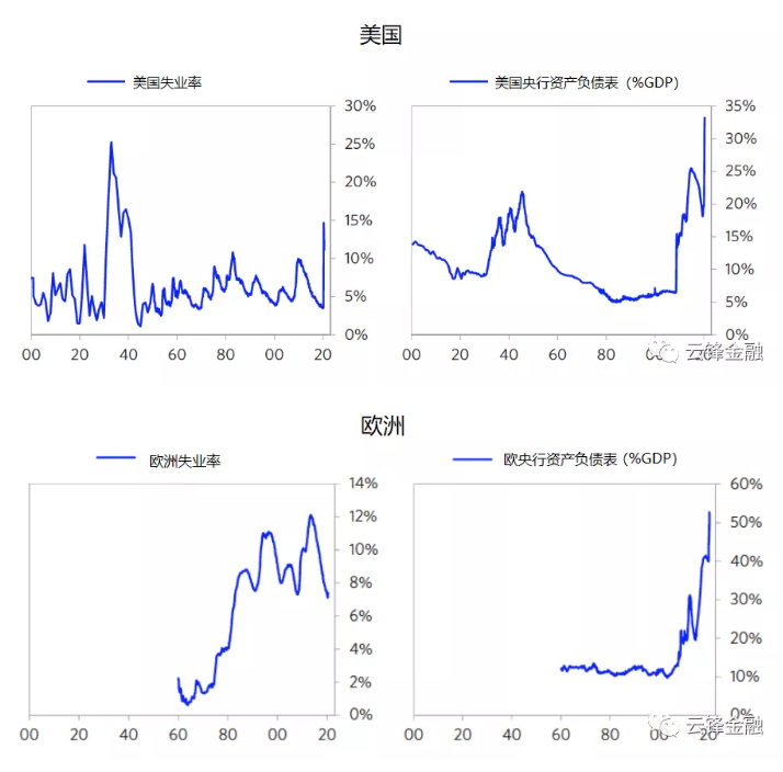 同时,美国的领导地位和相对财富的下降,促使特朗普以更激进的方式与国际组织和其他国家及地区进行谈判。 2020年3月,美国新冠疫情爆发,经济活动和就业水平随之骤降,美国政府出台了大规模的刺激政策,美联储也大量印钞,为巨额债务买单。其他国家央行也是如此,印钞和购买金融资产都已接近或超过了战争年代的纪录。
