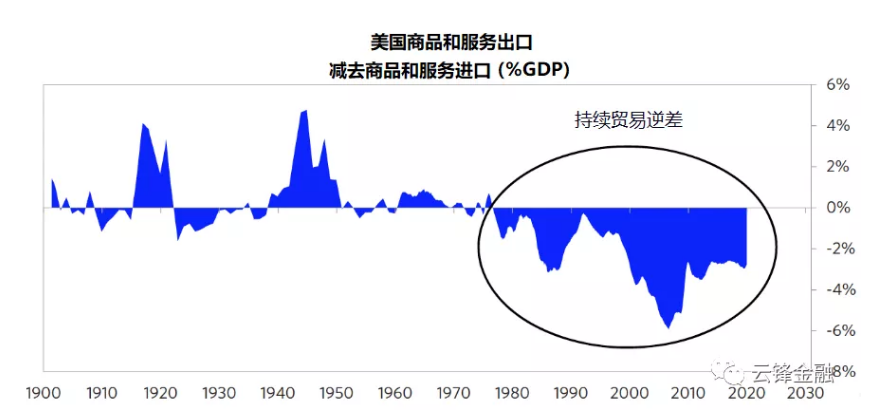 但是出口只是净外部收入的一个影响因素。一国通过对外贸易获得的净收入等于出口收入减去进口支出。美国在1970年前的出口额大于进口额,此后进口额大于出口额。