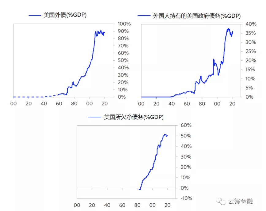 因为这些债务是以美元计价的,美国不会还不起债,因为美联储可以印钞,用贬值的美元来还债。