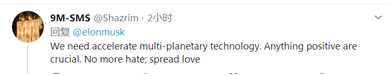 有网友提醒道:“我们需要加速推动多行星(探索)技术。任何积极的事情都至关重要。传播爱而不是更多的仇恨。”↓