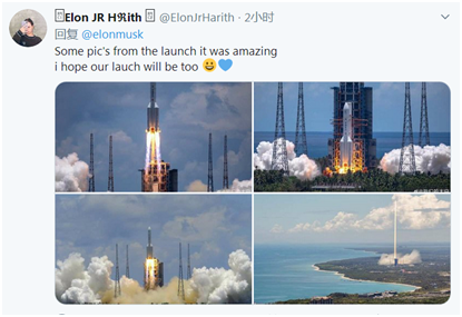 北京时间23日中午,我国成功发射首次火星探测任务“天问一号”探测器。之后不久,美国太空探索技术公司创办人埃隆·马斯克就此消息发推,“今天,中国发射了令人惊叹的‘天问一号’火星探测器。”
