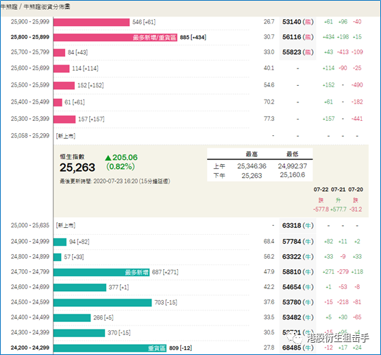 街货分布方面,截至周四,恒指牛证街货主要在收回价24200点至25000点之间,累计相当约3363张期指合约;恒指熊证街货在收回价25300点至26000点区间,相当约2009张期指合约。
