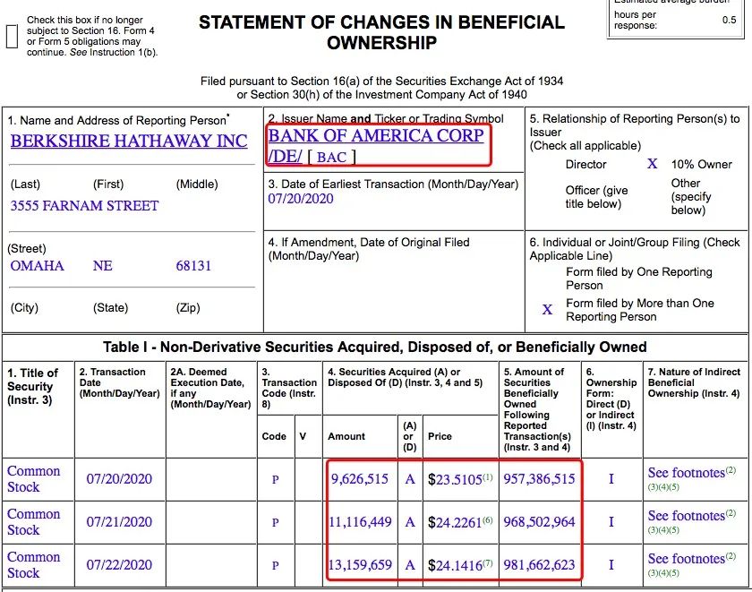 新冠疫情的阴影仍然笼罩着美国。但近日,“股神”巴菲特8亿美元抄底美国银行。美国证券交易委员会文件显示,巴菲特旗下投资公司伯克希尔·哈撒韦在7月20日至22日以平均每股24美元的价格买入3390万股美国银行股票,价值8.133亿美元,持股比例从10.9%提高到11.3%。持股市值超过240亿美元。美国银行会是股神在此次股灾给出的最终代码吗?
