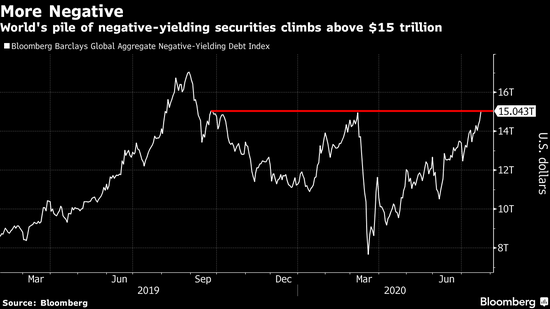彭博巴克莱指数显示,截至周三,全球负收益率债券规模为15.04万亿美元,创下今年以来最高水平,超过四个多月前创下的14.9万亿美元的年内高位。
