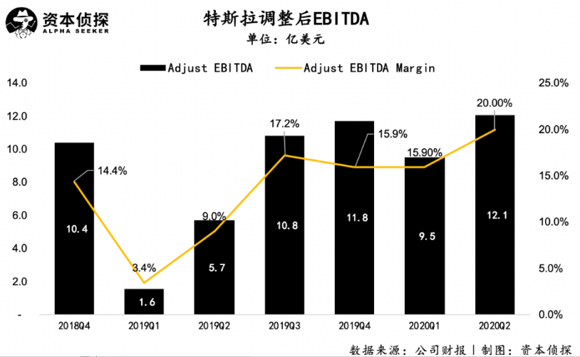 此外,本季度特斯拉调整后EBITDA为12.1亿美元,调整后EBITDA Margin为20%。Non-GAAP下调整后EBITDA作为分析师对公司估值衡量的重要指标,被广泛应用。特斯拉二季度在此数值下的优异表现,很大程度上将继续支持其股价持续上涨的趋势。