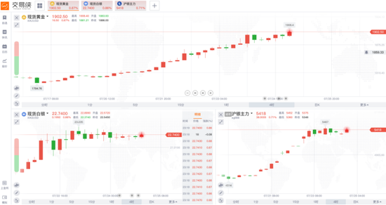 金银本周开启疯狂模式,白银率先暴走,前三个交易日涨势如虹,连破20、21、22美元三道关口,周四站上23美元后,白银涨势稍歇,周五小幅回落至23美元下方。沪银本周涨约20%。